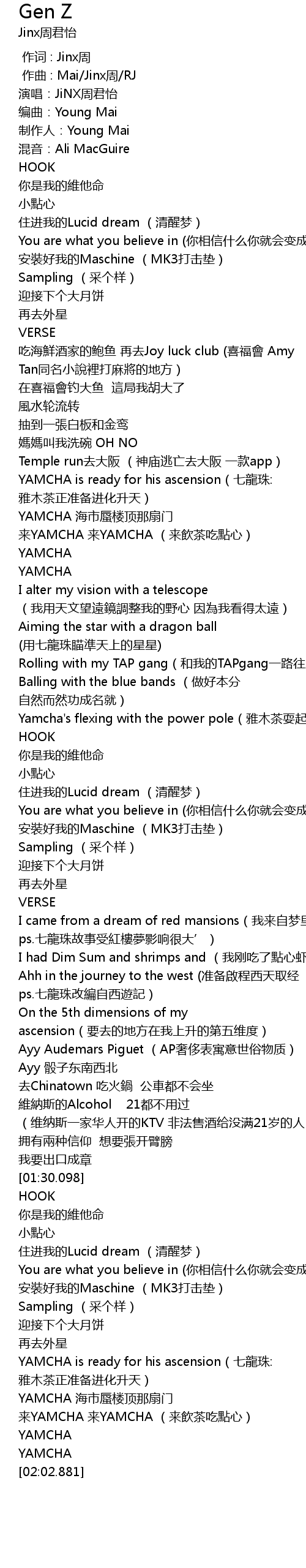 | [00:00.000] | 作词 : Jinx周 |