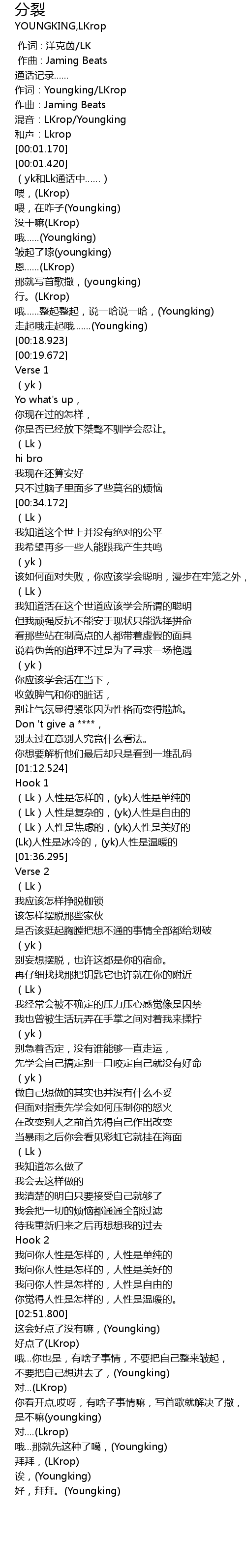 | [00:00.670] | hùn yīn: LKrop Youngking |