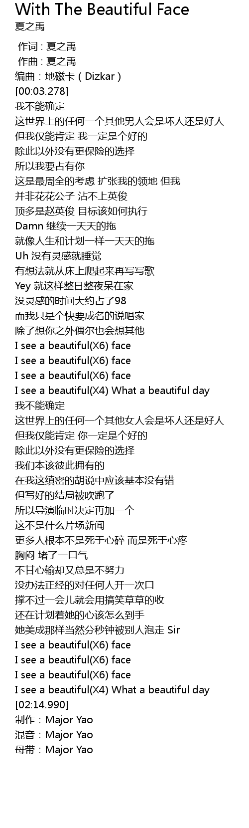 | [02:17.289] | 母带:Major Yao |