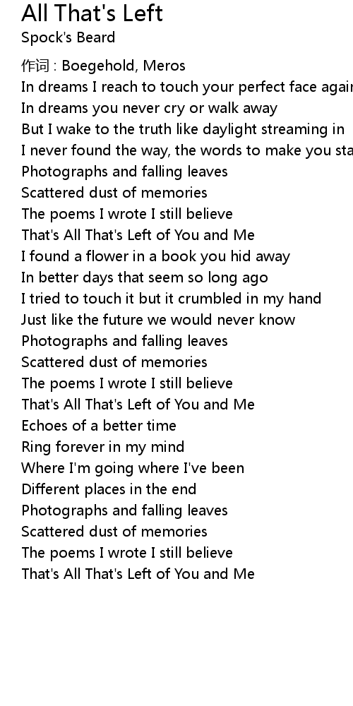 | That' s All That' s Left of You and Me |