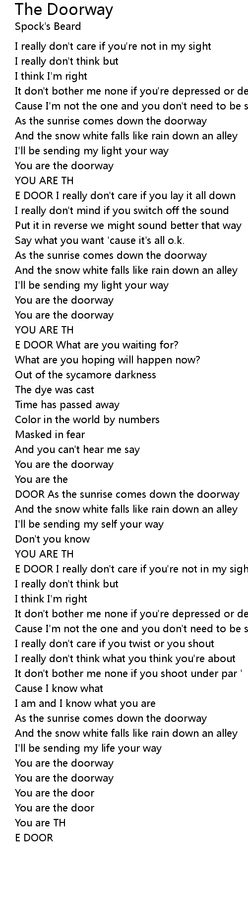 E DOOR I really don't care if you're not in my sight |