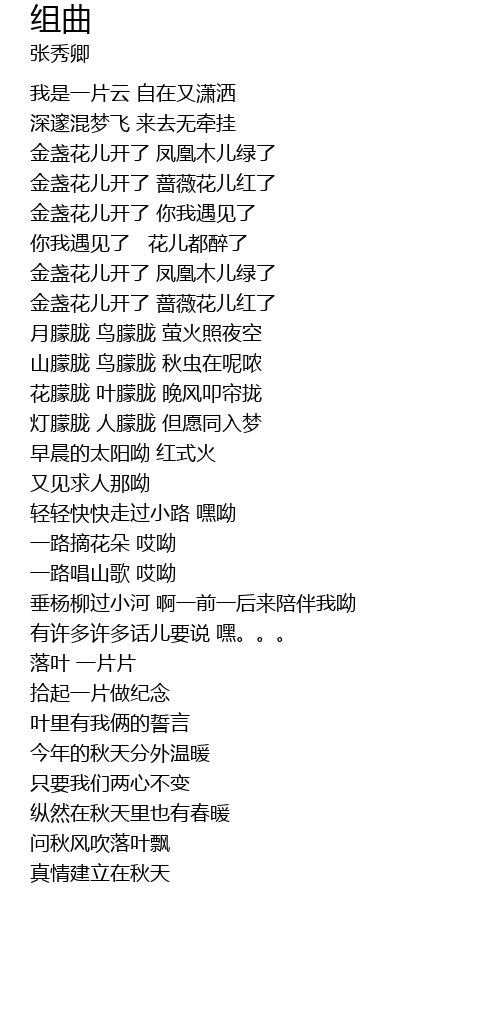 | [01:30.72] | 金盏花儿开了 蔷薇花儿红了 |