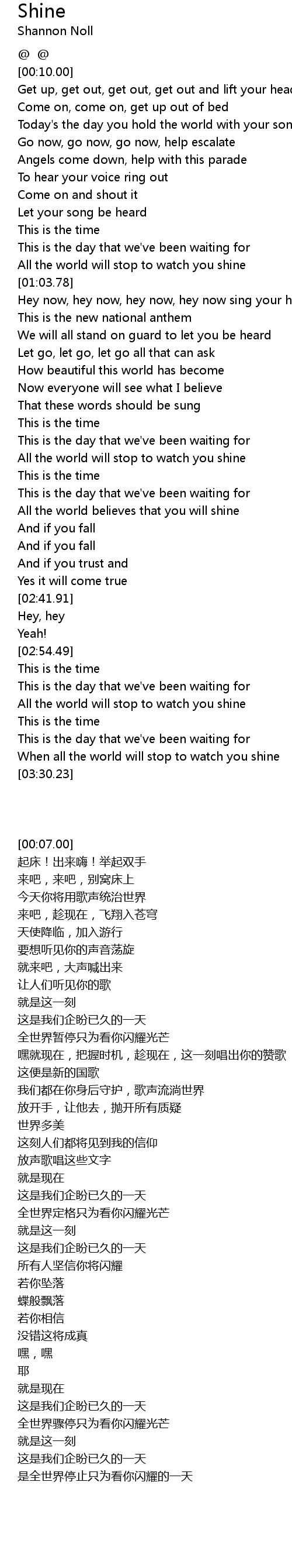 All the world will stop to watch you shine |