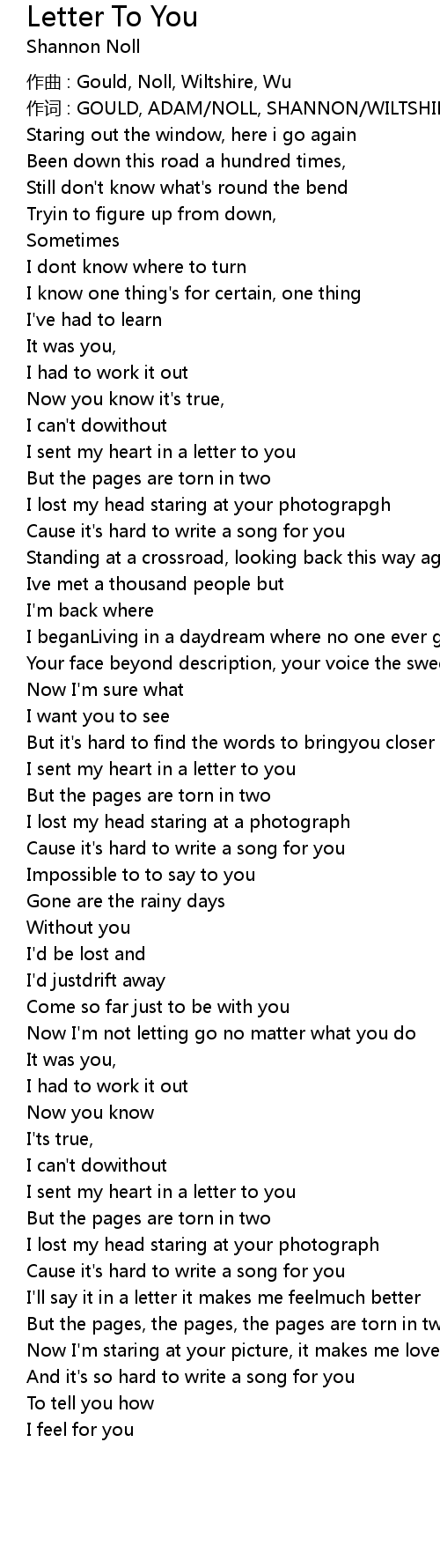 | Song | Letter To You |