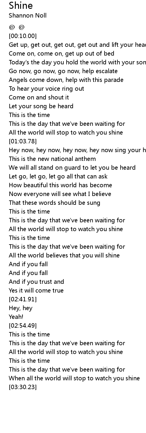When all the world will stop to watch you shine |