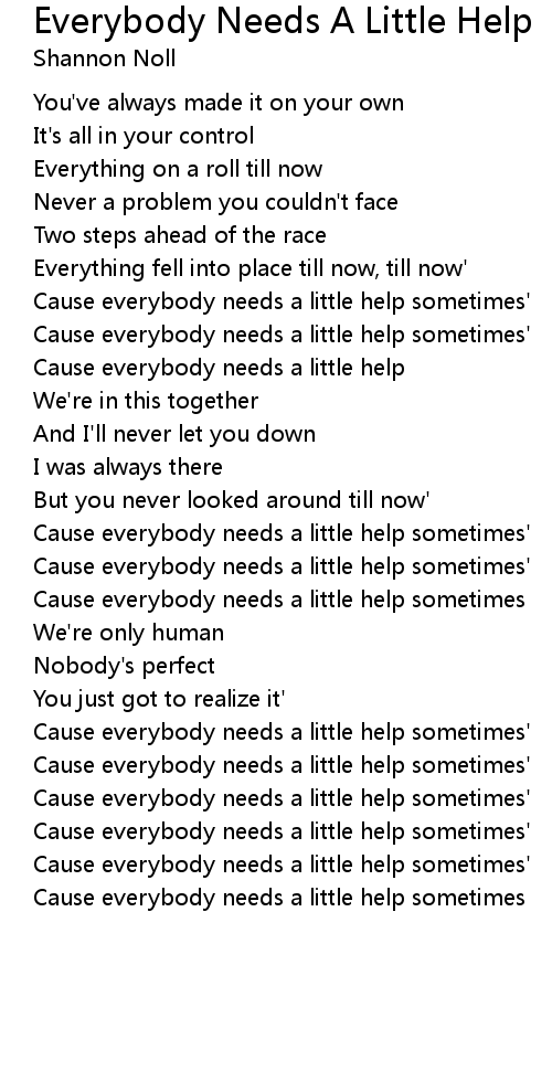 Cause everybody needs a little help sometimes' |