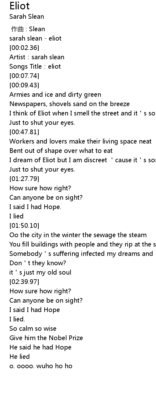 | [00:01.01] | sarah slean - eliot |