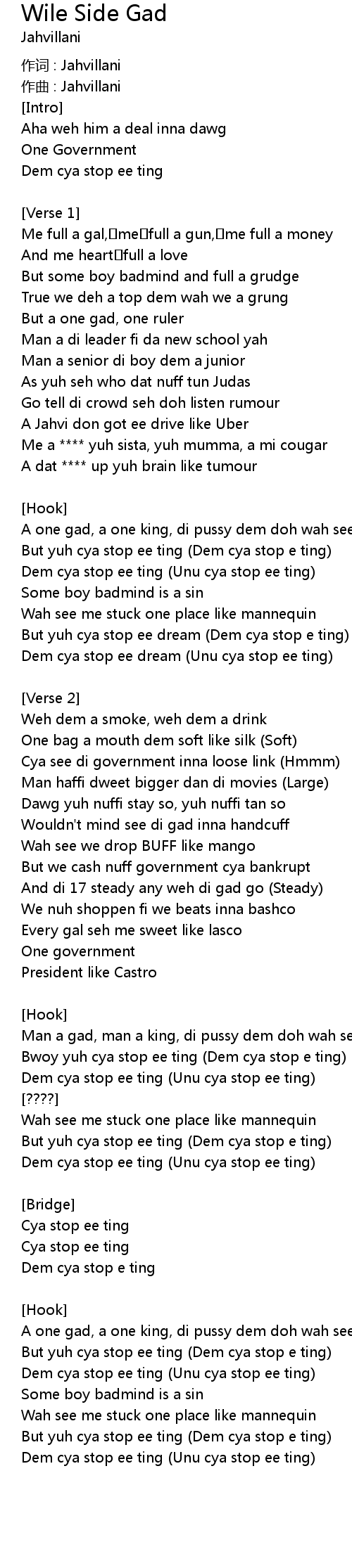 | Bwoy yuh cya stop ee ting Dem cya stop e ting | |