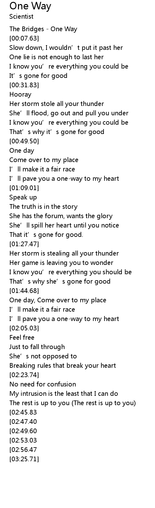 | [00:58.31] | I’ll pave you a one-way to my heart |