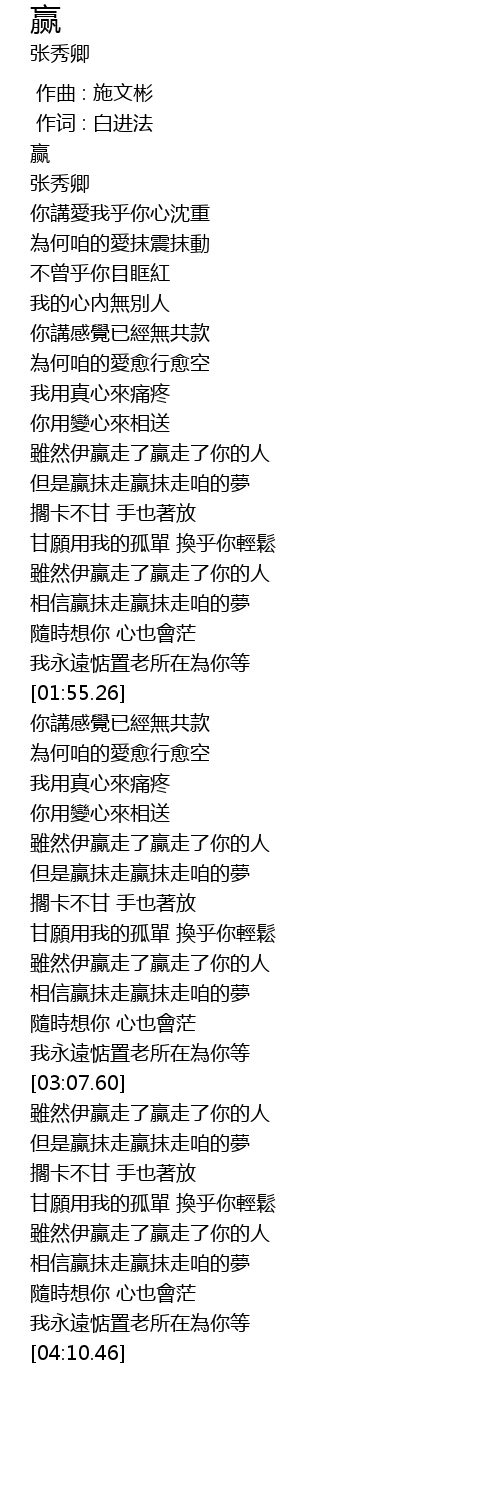 | [03:45.34] | 雖然伊贏走了贏走了你的人 |