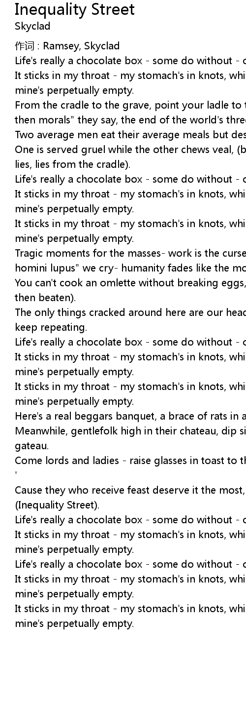 | Song | Inequality Street |