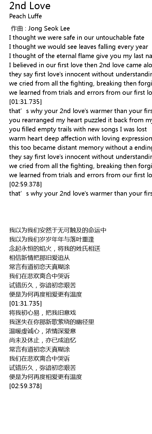 | [02:51.511] | that' s why your 2nd love' s warmer than your first |