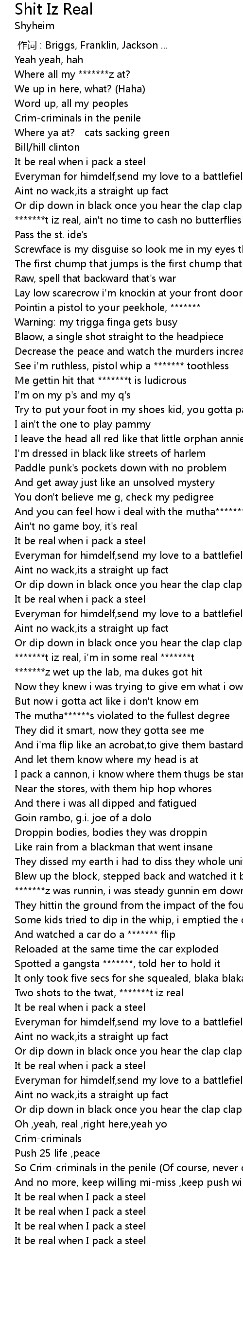 | [01:47.49] | *******t iz real, i'm in some real *******t |