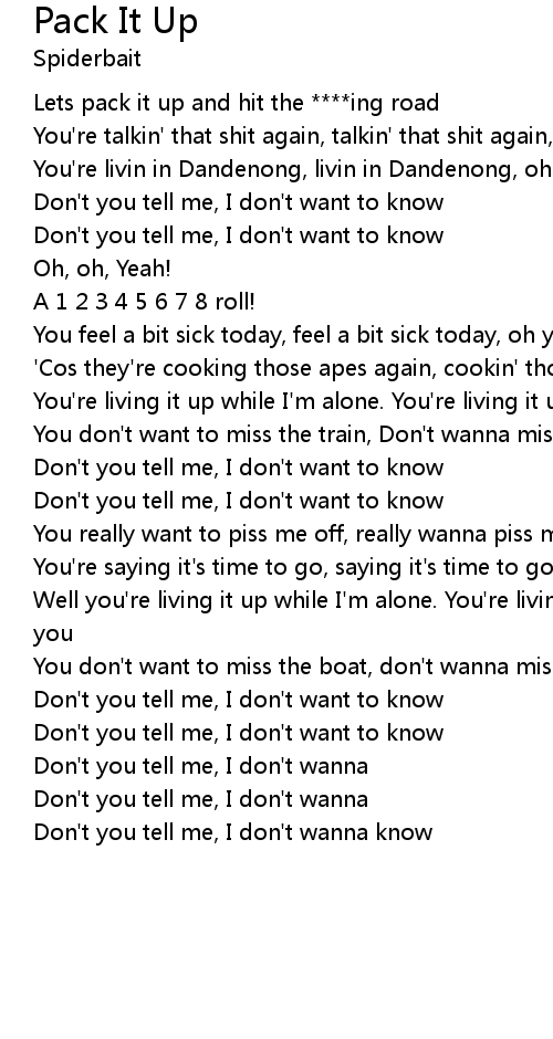 Lets pack it up and hit the ****ing road |