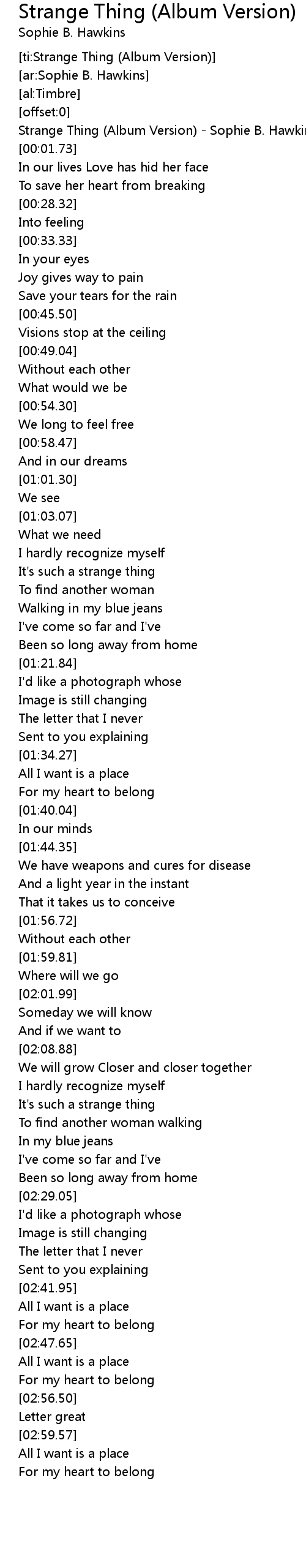 [ti:Strange Thing (Album Version)] |