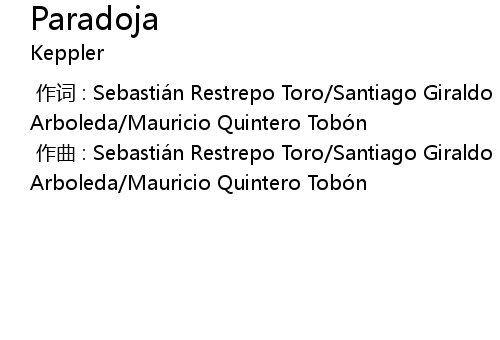 | [00:00.00-1] | 作曲 : Sebastián Restrepo Toro/Santiago Giraldo Arboleda/Mauricio Quintero Tobón |