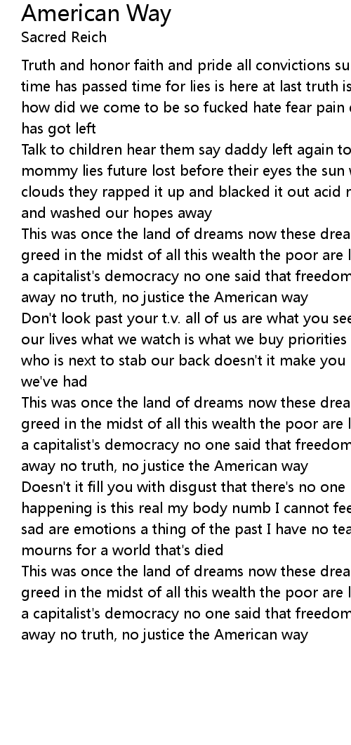 Truth and honor faith and pride all convictions surely died honesties |