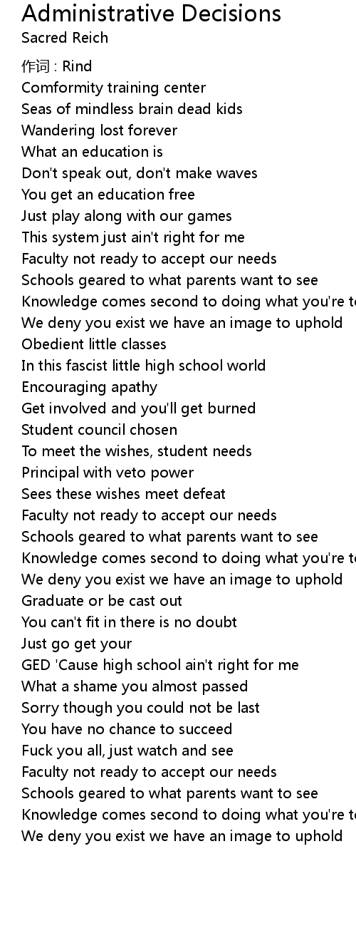 | Song | Administrative Decisions |