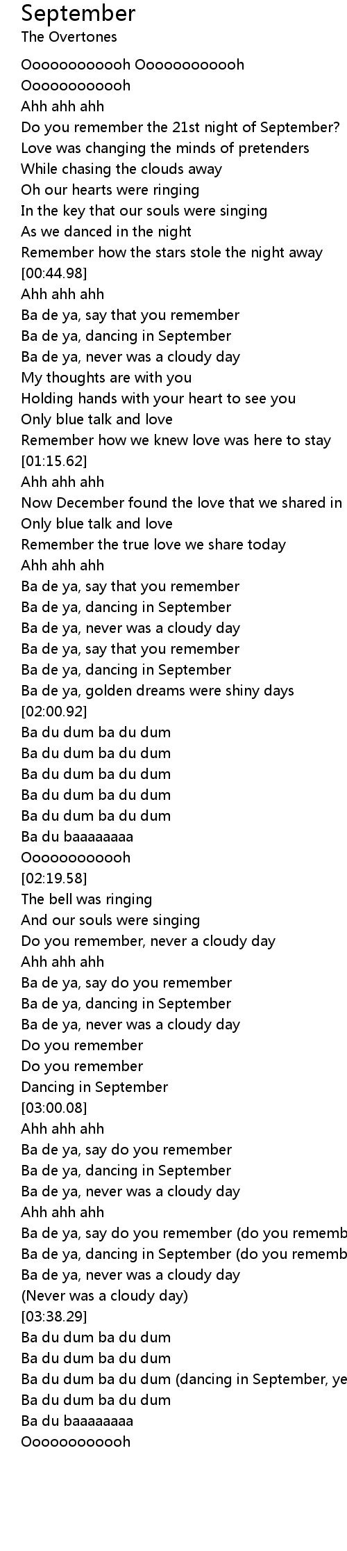 Ba de ya, dancing in September (do you remember) |