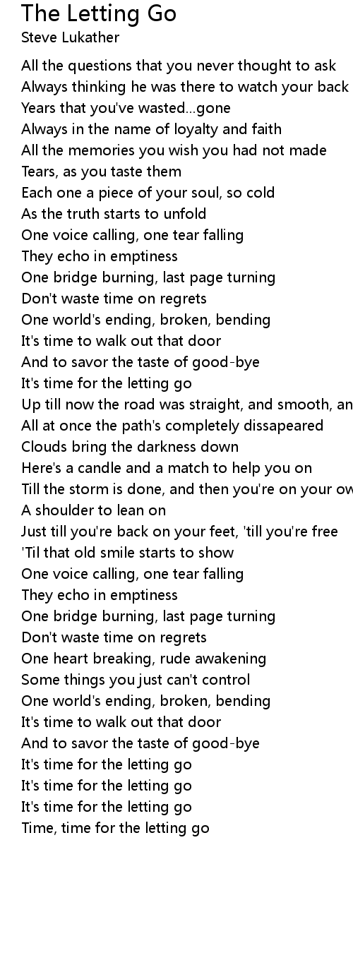 Time, time for the letting go |