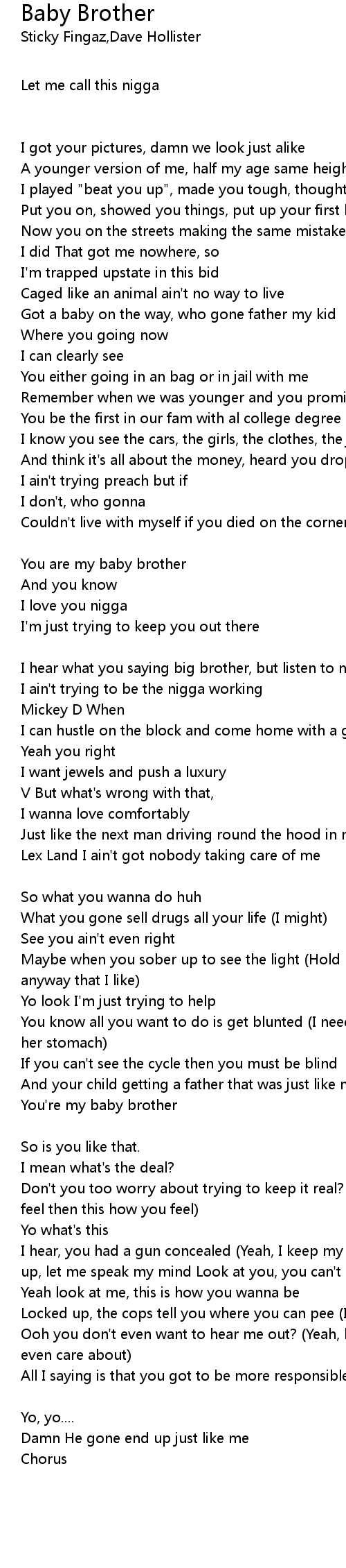 You're my baby brother [Chorus: Dave Hollister] |