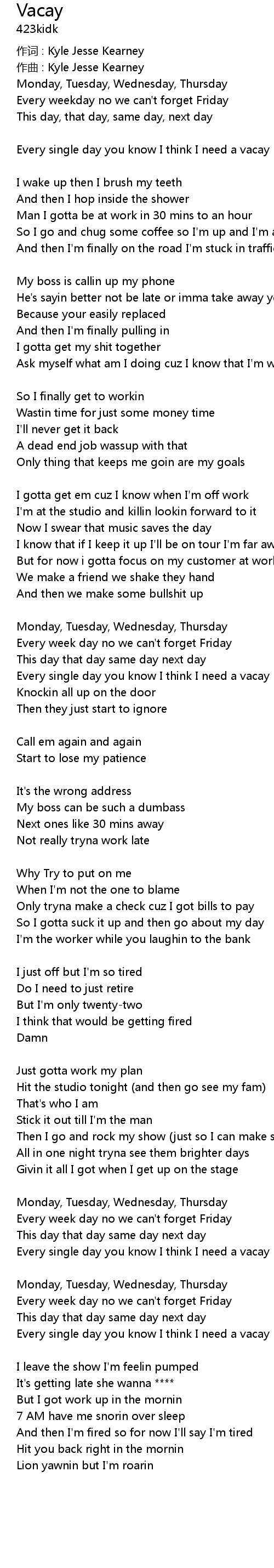 | 作词 : Kyle Jesse Kearney | |