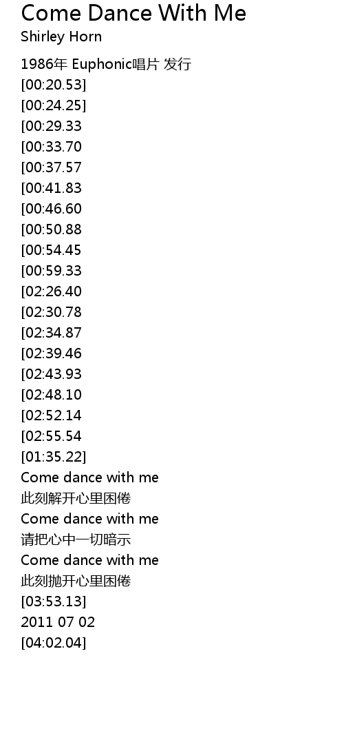 | [03:35.44][02:34.87][01:12.00] | Come dance with me |