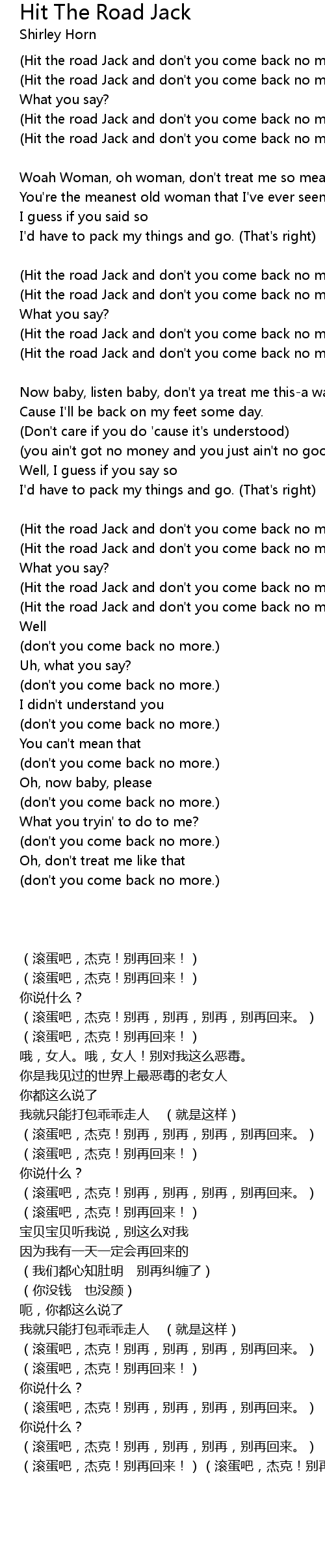 | Hit the road Jack and don' t you come back no more. | |