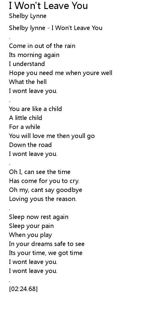 Shelby lynne - I Won't Leave You |