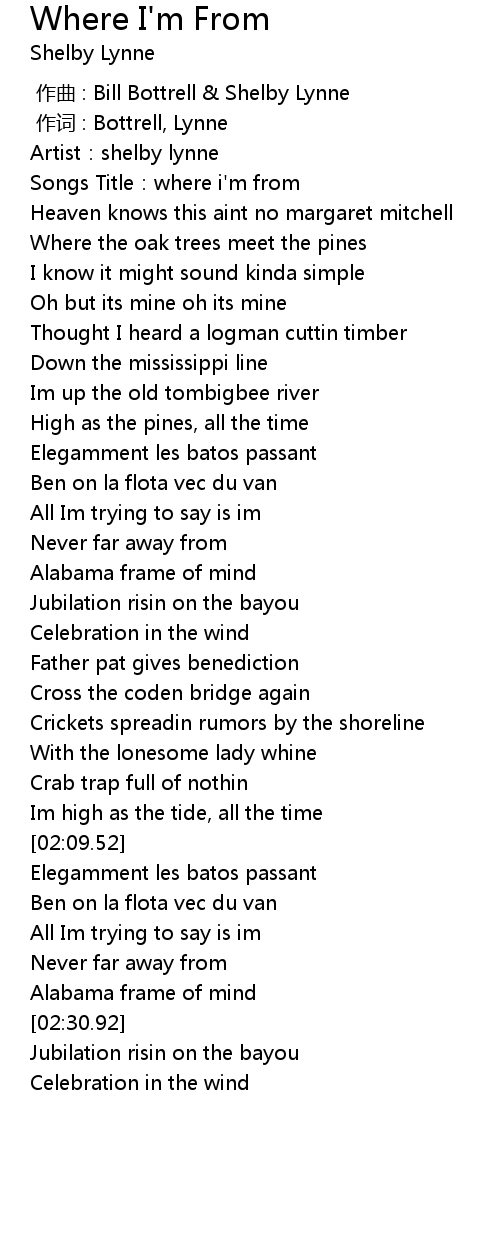 | [00:00.00] | 作曲 : Bill Bottrell & Shelby Lynne |