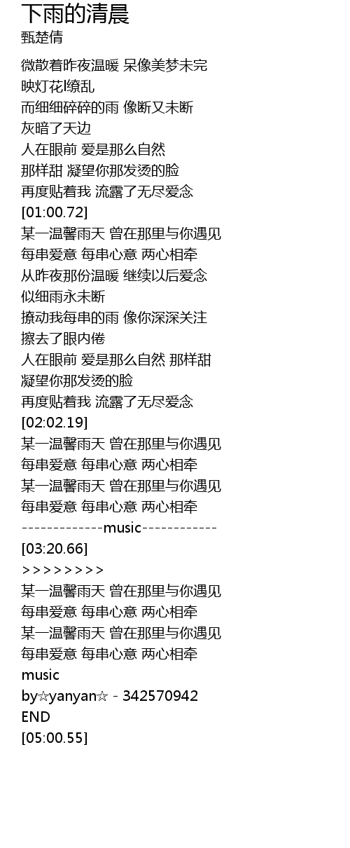 | [04:48.73] | by☆yanyan☆ - 342570942 |