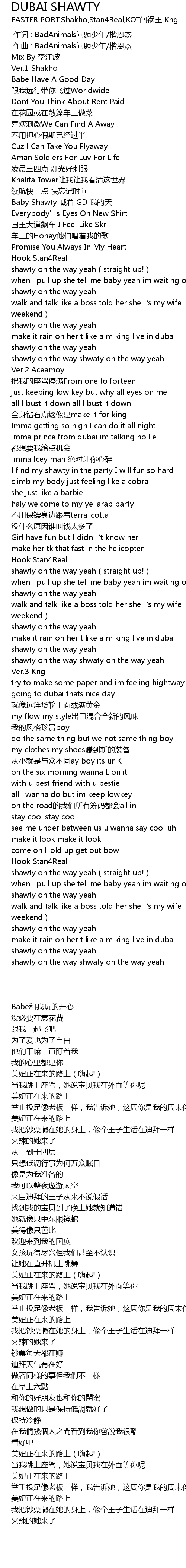 | Song | DUBAI SHAWTY |