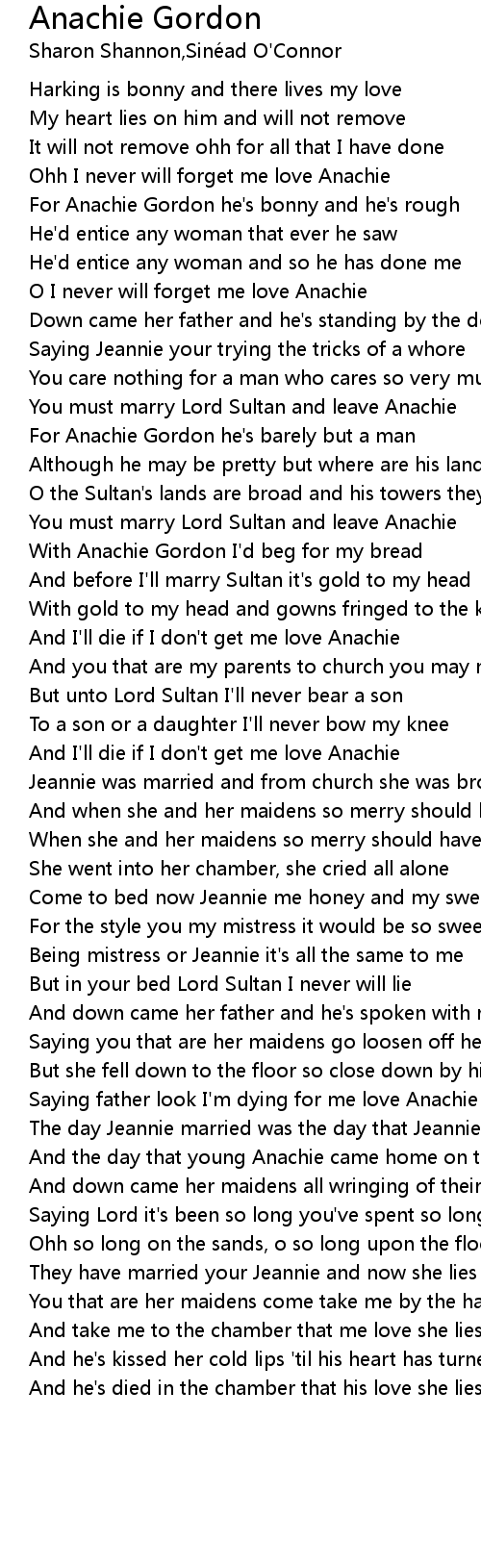 With Anachie Gordon I'd beg for my bread |