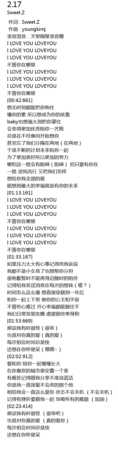 | [00:00.000] | 作词 : Sweet.Z |