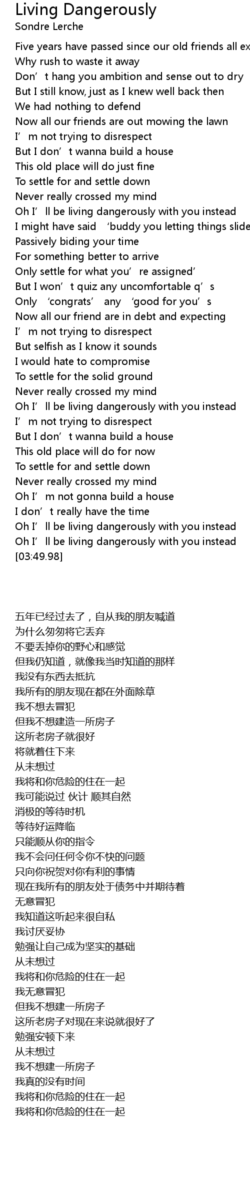 | [03:22.09] | Oh I’ll be living dangerously with you instead |