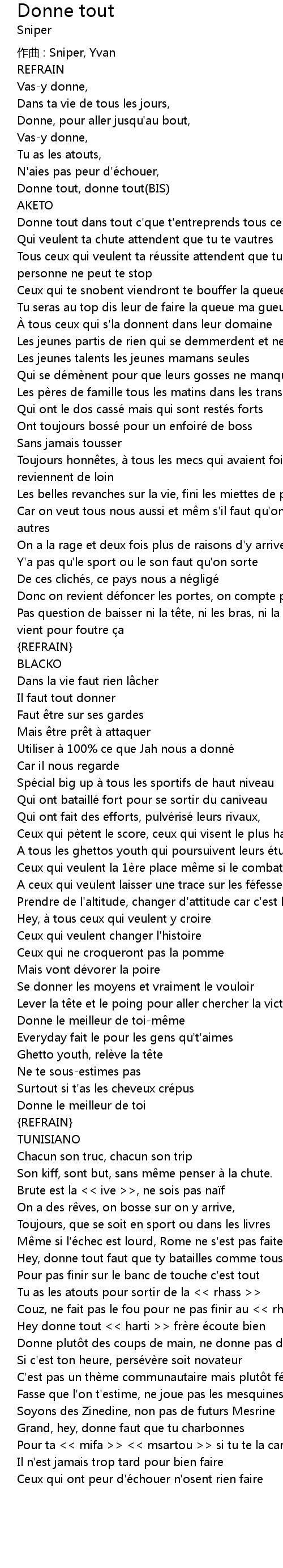 | Song | Donne tout |