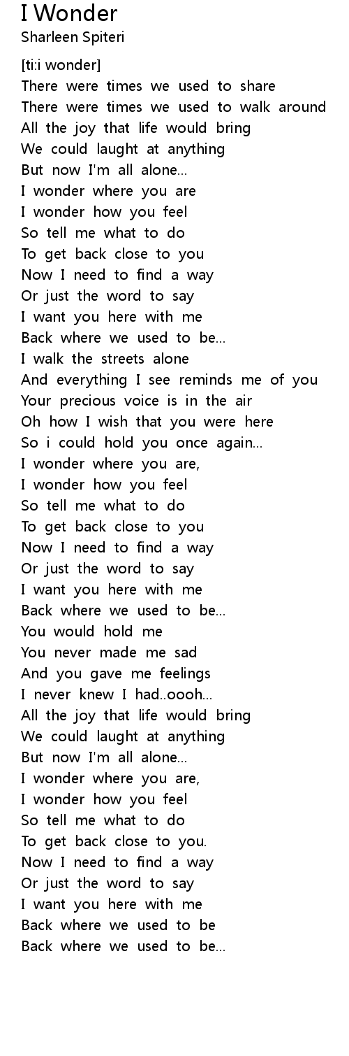 I wonder where you are |