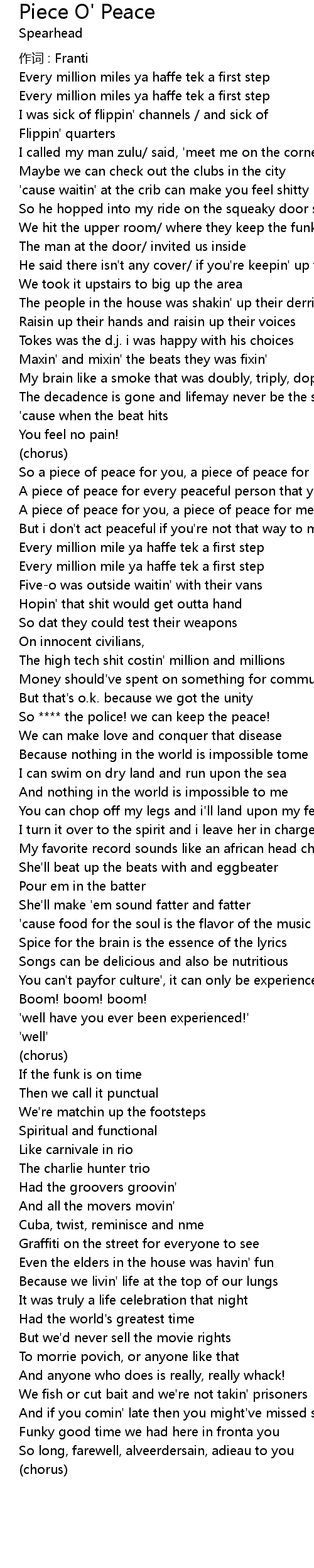 | So a piece of peace for you, a piece of peace for me | |