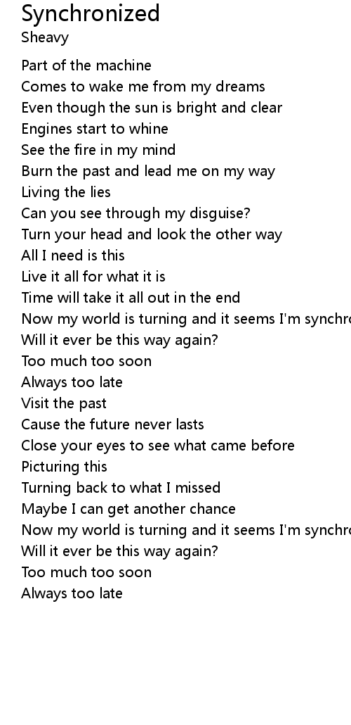 Now my world is turning and it seems I'm synchronized |