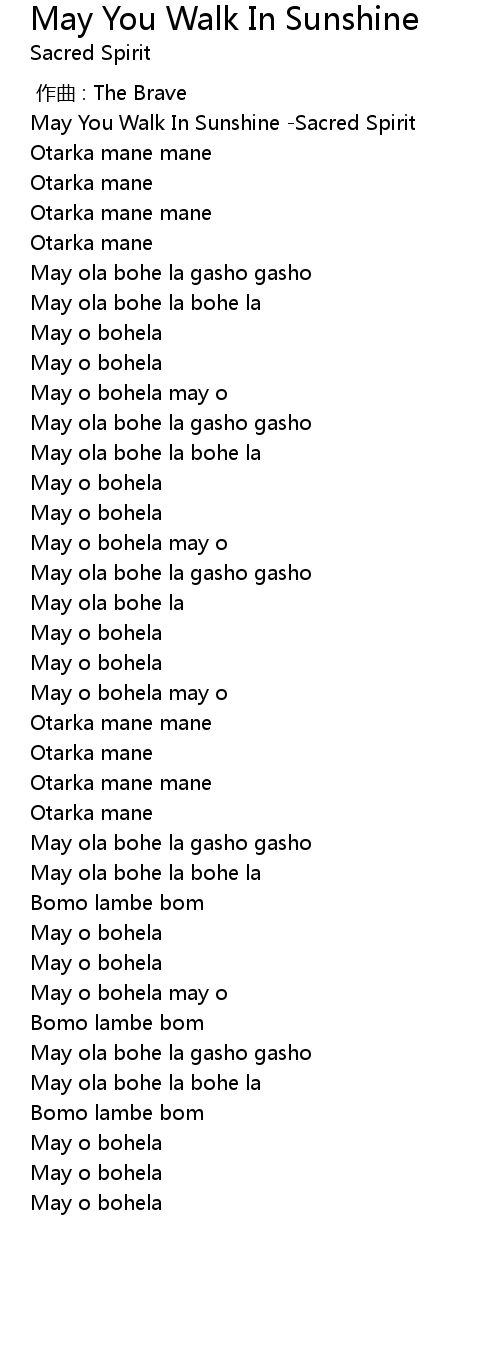 | [00:00.118] | May You Walk In Sunshine Sacred Spirit |
