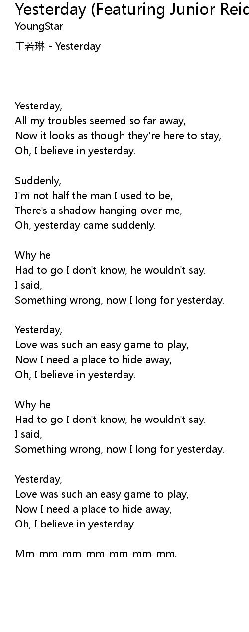 | Song | Yesterday (Featuring Junior Reid) (LP Version) |