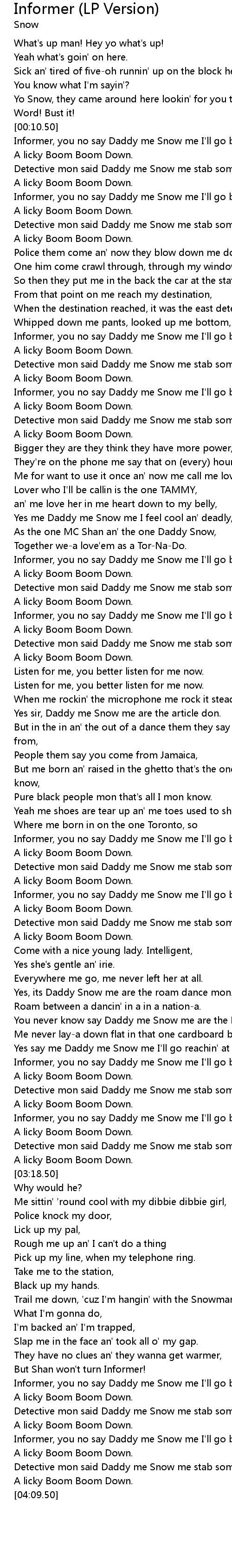 Informer, you no say Daddy me Snow me I'll go blame, |