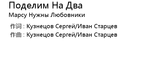 | [00:00.00-1] | 作词 : Кузнецов Сергей/Иван Старцев |