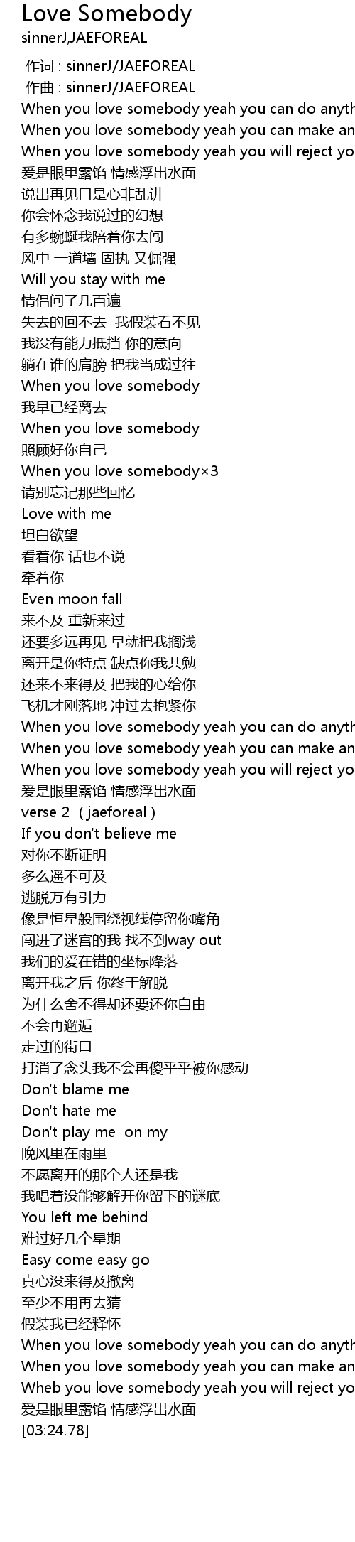 | [03:16.19] | Wheb you love somebody yeah you will reject your friend |