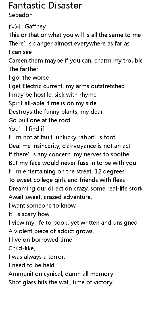 | Song | Fantastic Disaster |