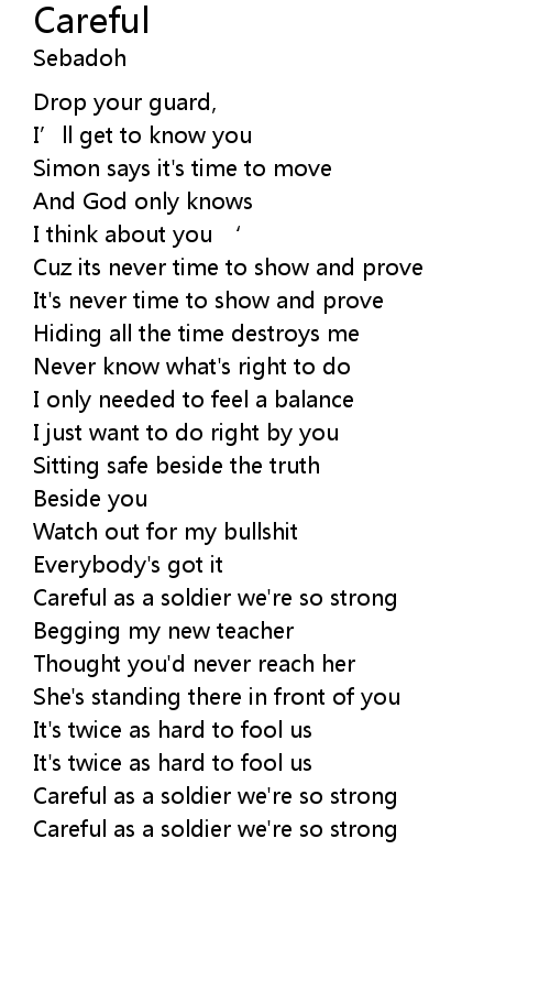 | Careful as a soldier we' re so strong |