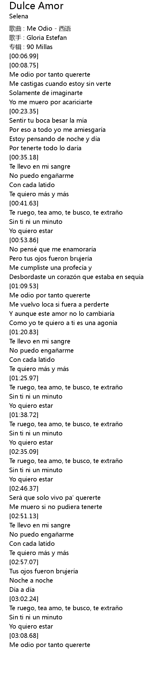 | [00:01.69] | 歌曲 : Me Odio - 西语 |