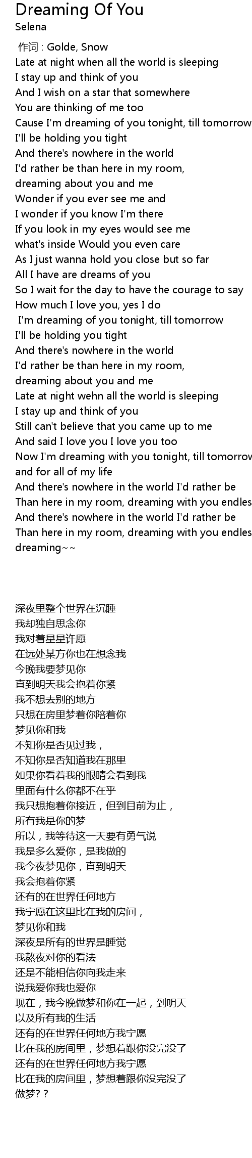 | [01:37.560] | All I have are dreams of you |