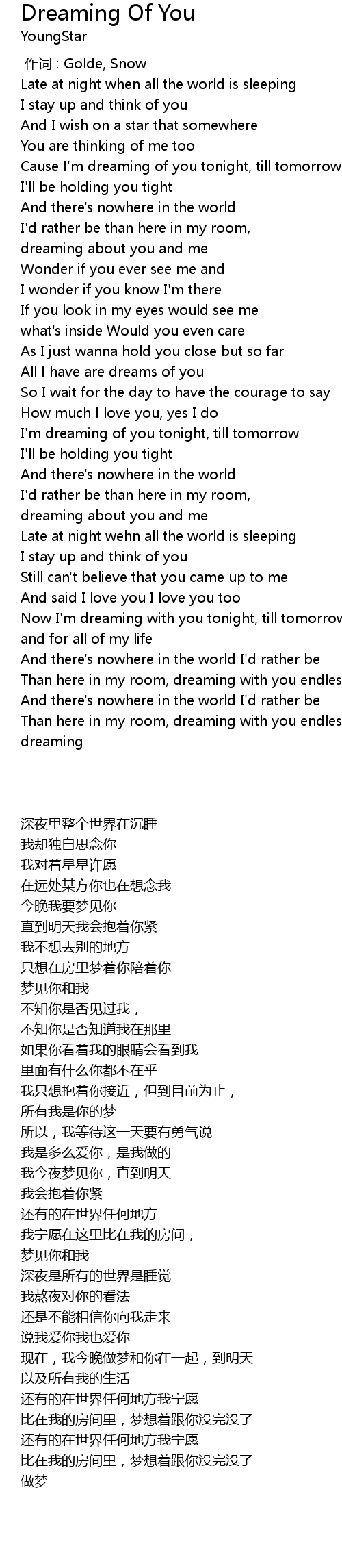 | [00:37.440] | Cause I'm dreaming of you tonight, till tomorrow |