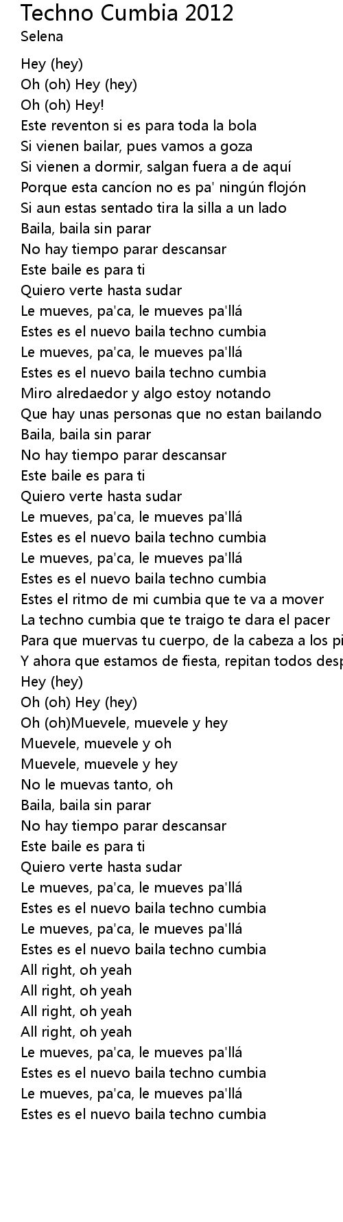 | Estes el ritmo de mi cumbia que te va a mover | |